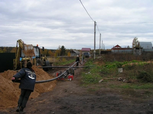 Насос или насосную станцию для колодца лучше всего располагать в доме или подсобном помещении. Поэтому от колодца до дома копаем траншею ниже глубины промерзания грунта и укладываем в нее трубу.